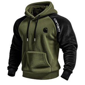• Design Elements: Contrasting sleeve colors, front pocket, logo detail on chest