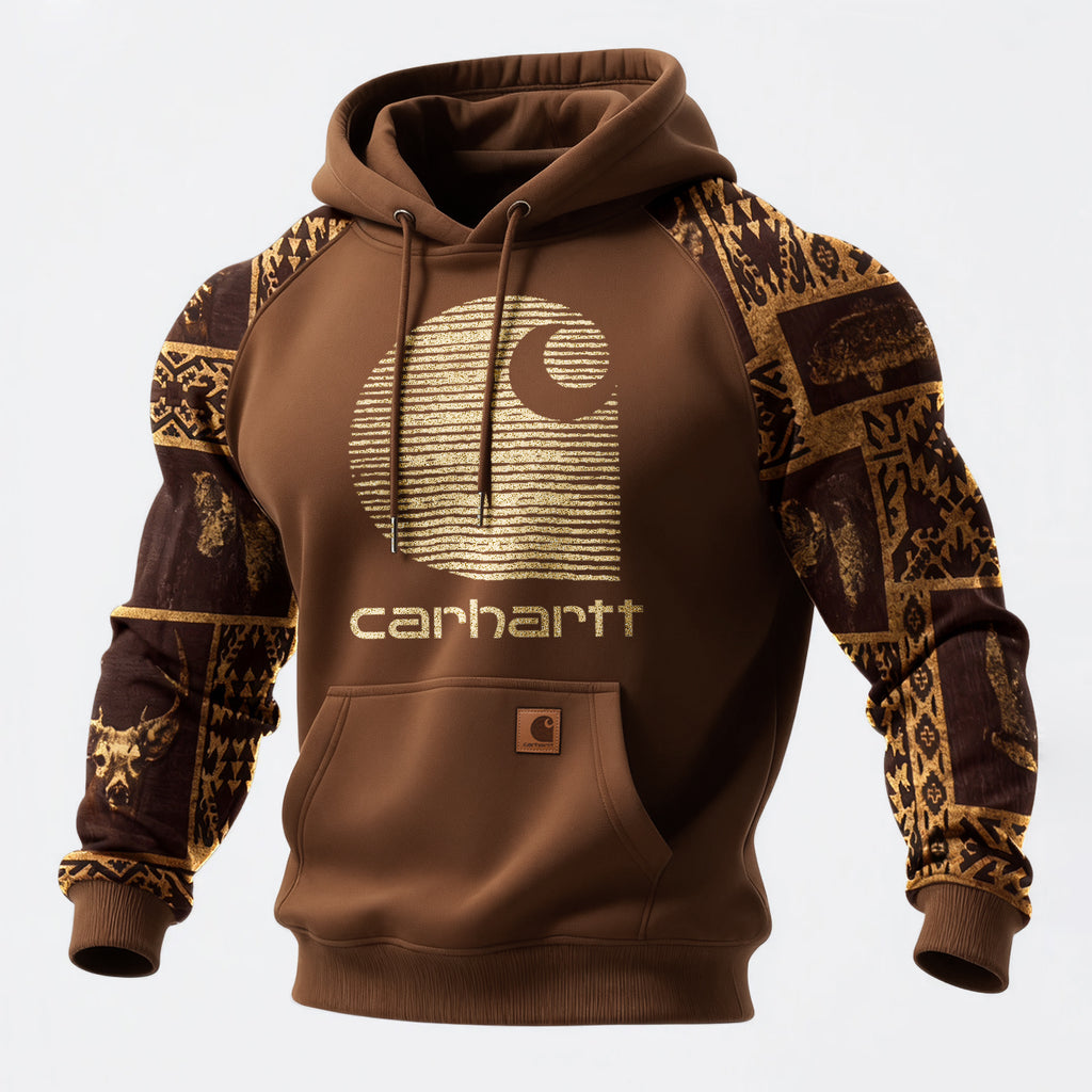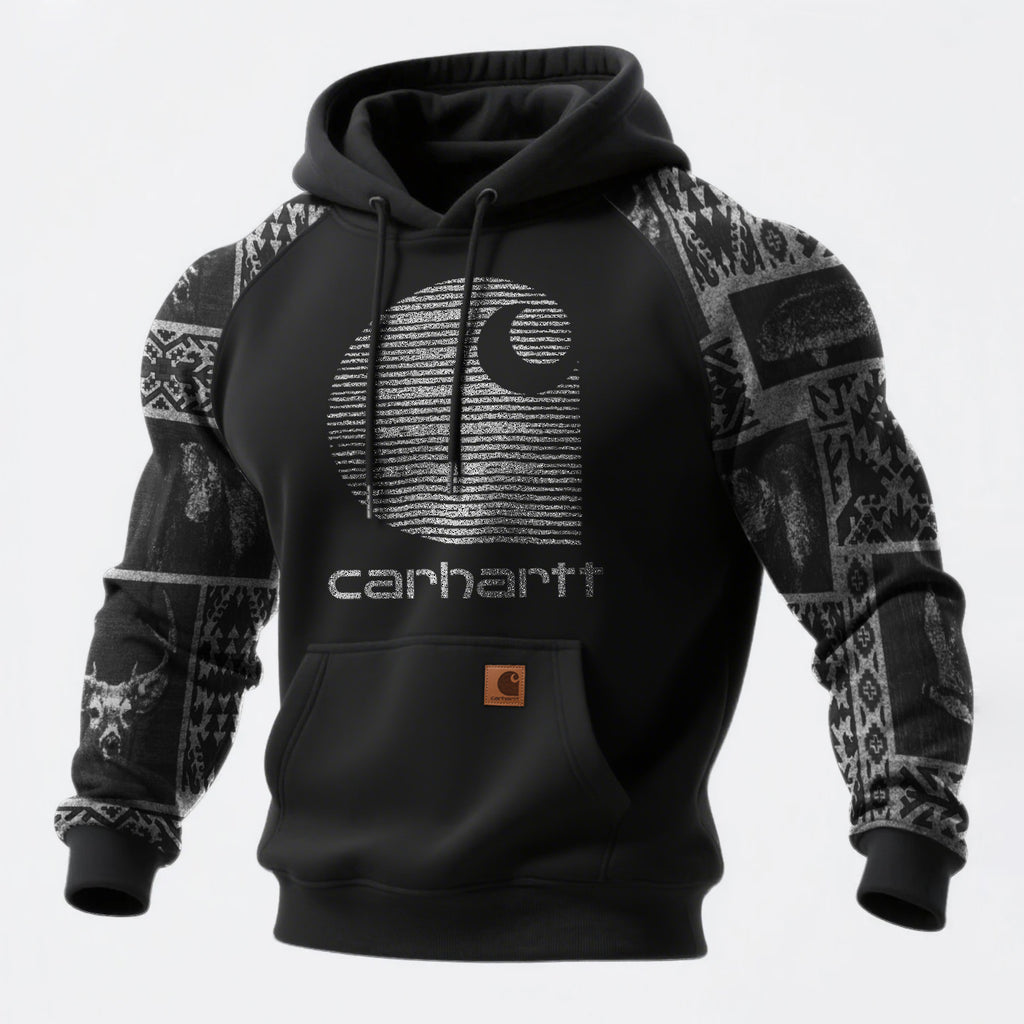 • Design Elements: Intricate tribal patterns on sleeves, bold graphic print on the front, classic hooded design