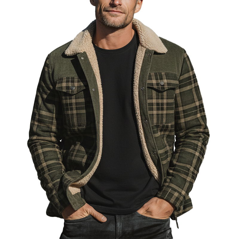 Men's Vintage Plaid Fleece Shearling Lapel Jacket