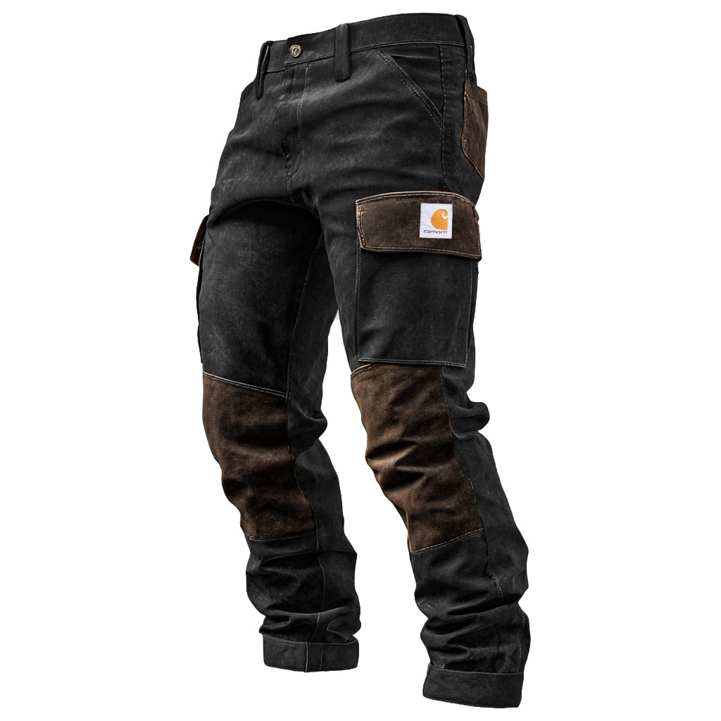 Men's Vintage Brown Suede Contrast Work Pants With Reinforced Knees