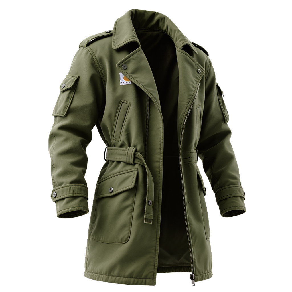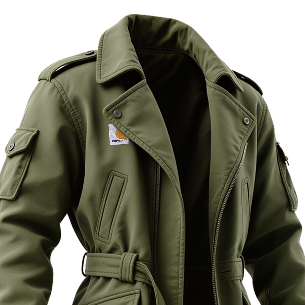 Men's Outdoor Retro Olive Green Utility Jacket With Adjustable Waist Belt