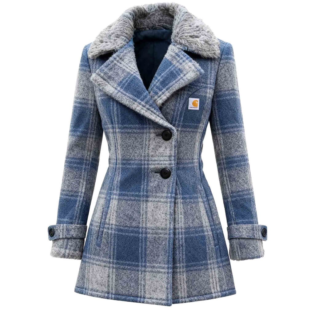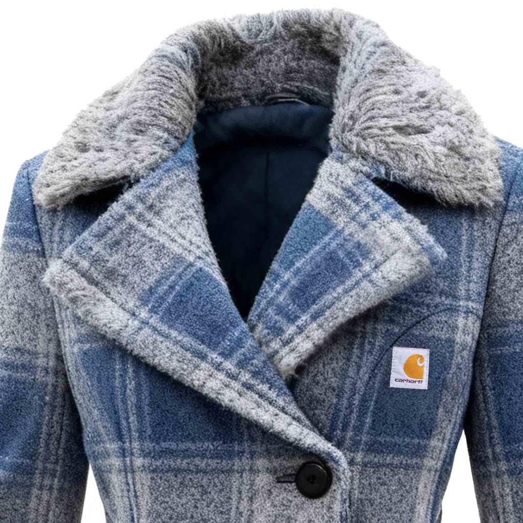 •    Design Elements: Classic plaid pattern, double-breasted closure, faux fur collar