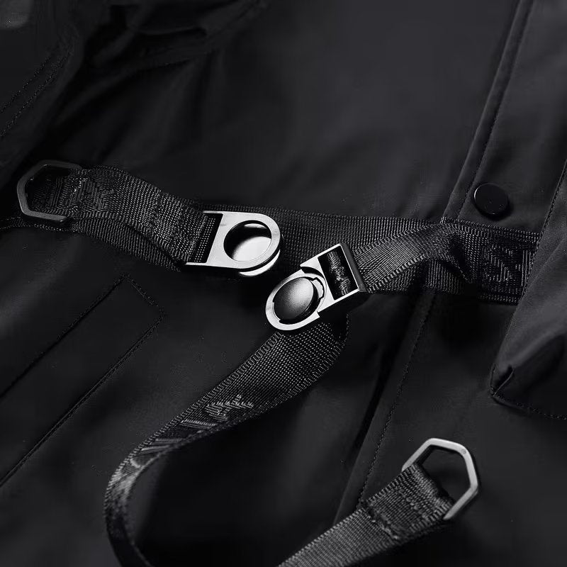 • Design Elements: Skull Patches on Sleeves, Utility Straps on Chest