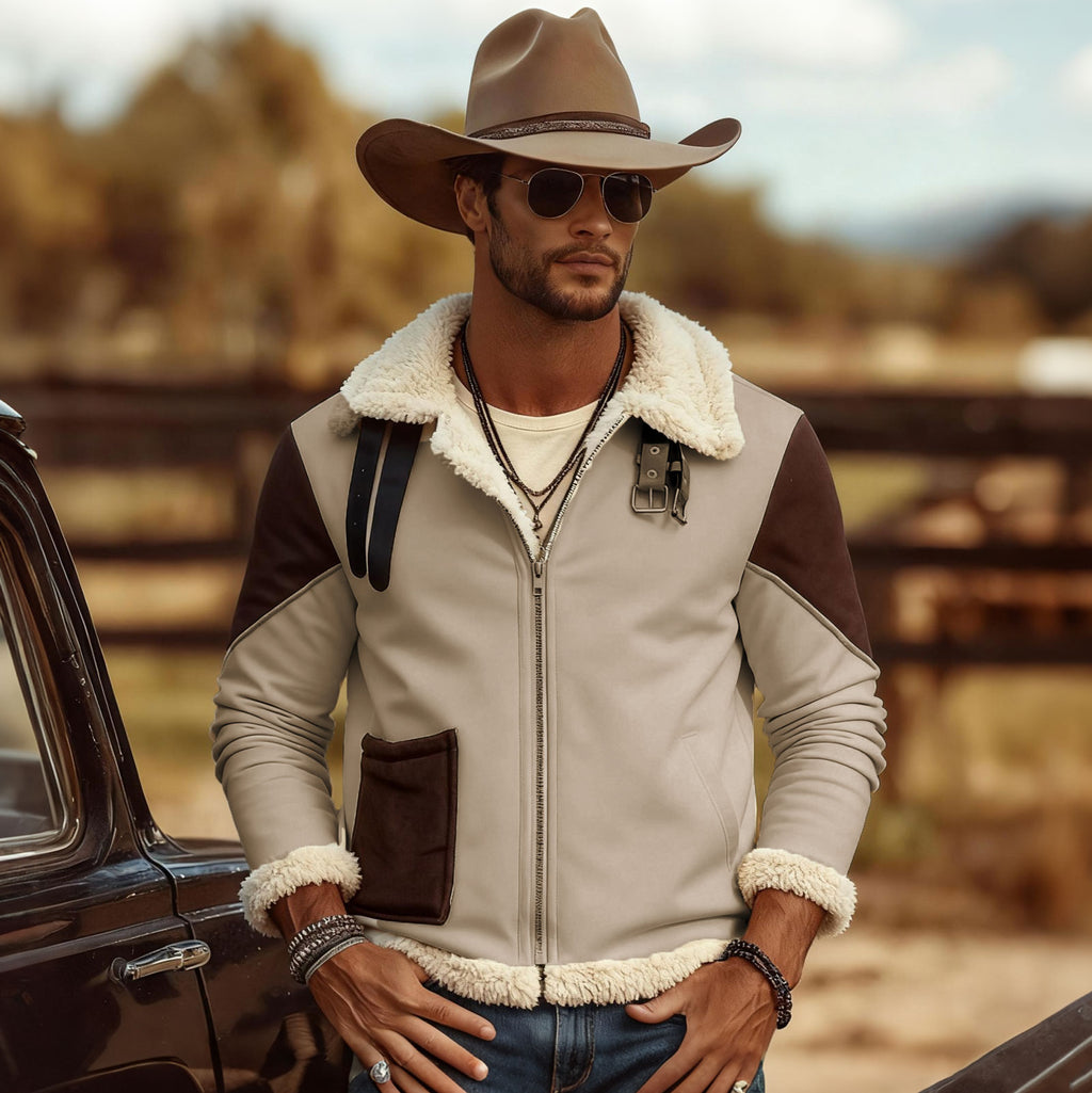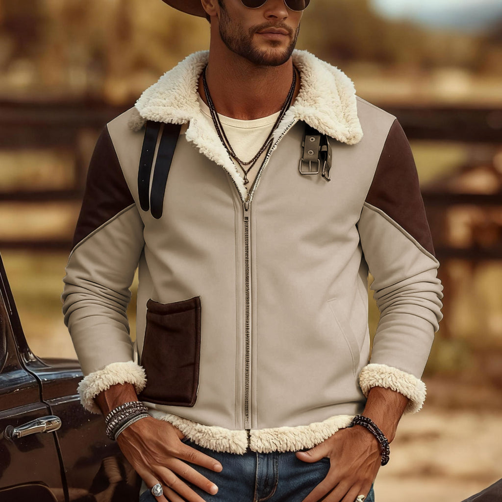 Stylish Aviator Jacket With Faux Fur Collar For Men