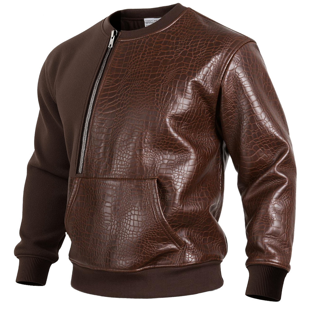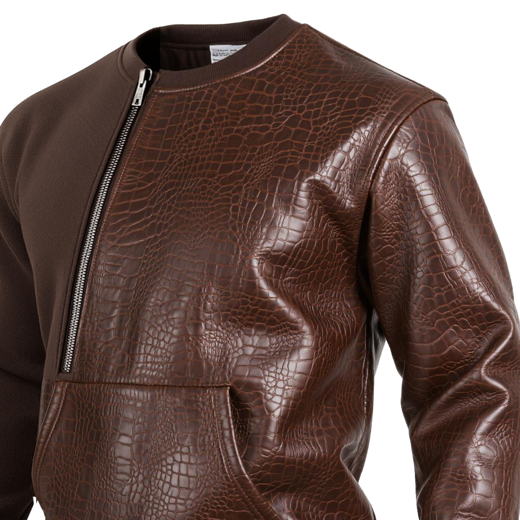 Men's Crocodile Texture Leather Sweatshirt Jacket With Zipper Closure