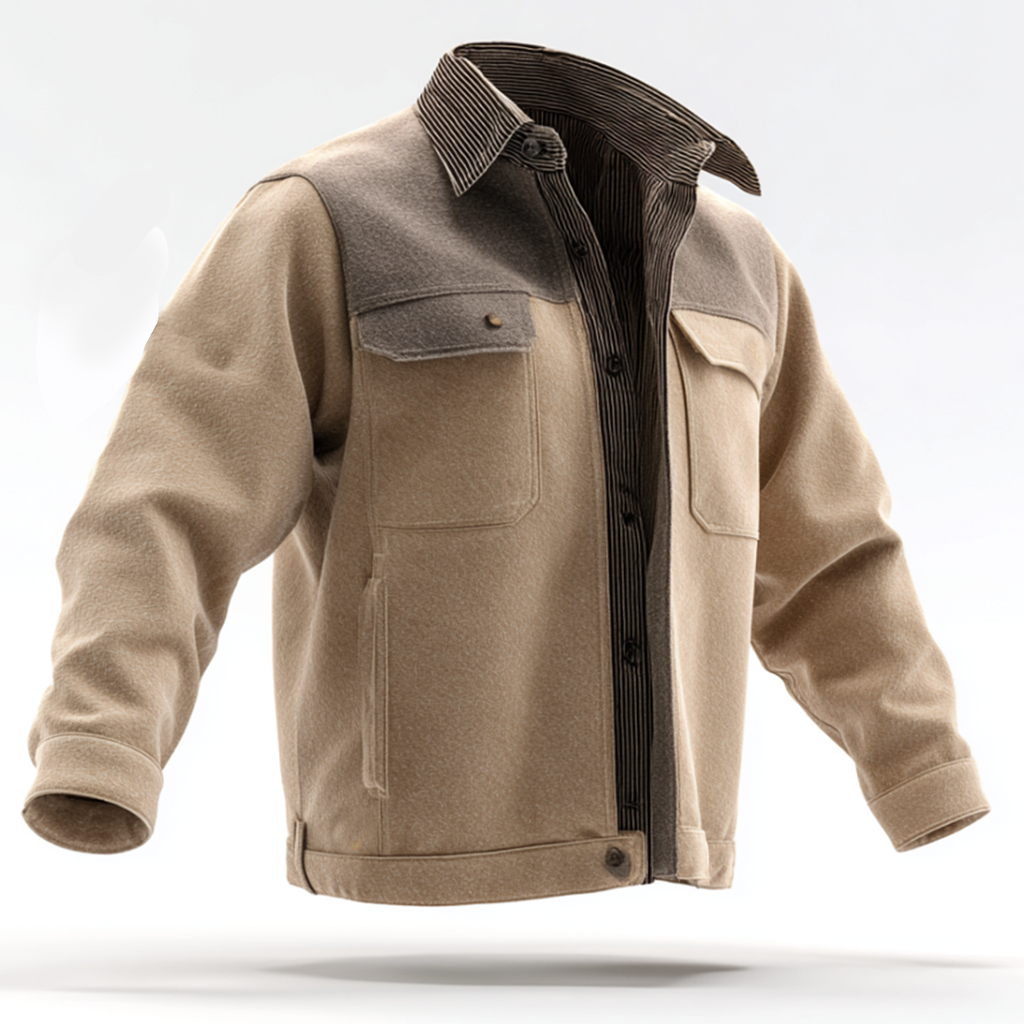 Men's Light Brown And Gray Color-block Patchwork Wool-textured Work Shirt Jacket
