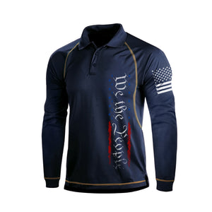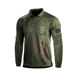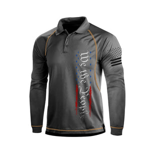 WE THE PEOPLE USA FLAG LONG SLEEVE POLO SHIRT