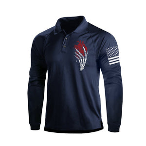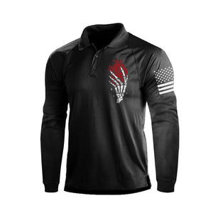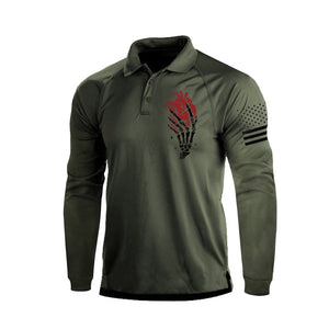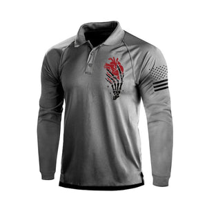 SKULL HEART QUICK DRY RAGLAN GRAPHIC LONG SLEEVE POLO SHIRT