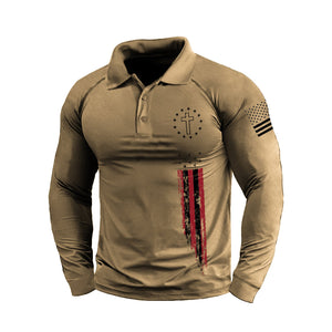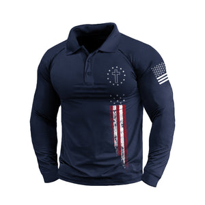 CROSS USA FLAG GRAPHIC RAGLAN LONG SLEEVE POLO SHIRT