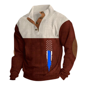 USA FLAG STANDING COLLAR HENRY LONG SLEEVED CASUAL SPORTS HOODIE