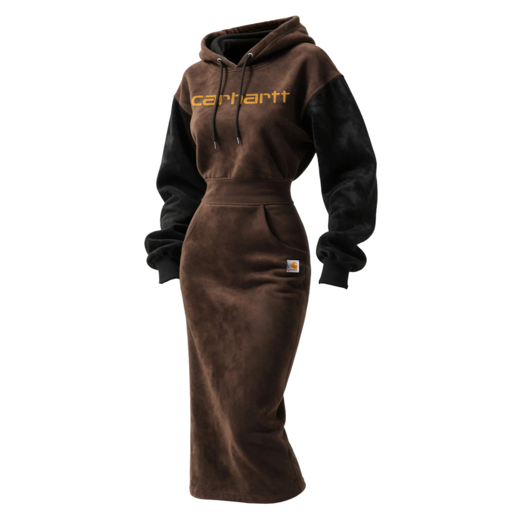 Women's Vintage Western Suede Hooded Long High Waist Hooded Dress