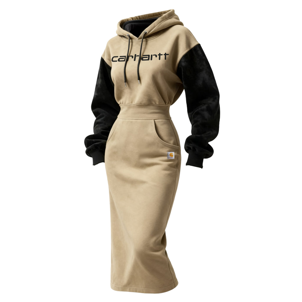 • Design Elements: Contrasting sleeve colors, front pocket detail, hooded design