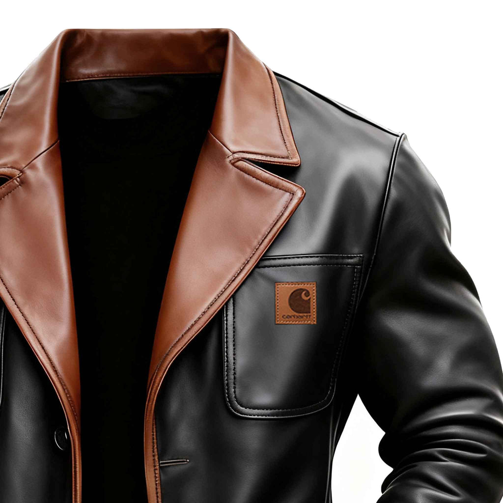 Men's Vintage Black And Brown Leather Lapel Collar Jacket