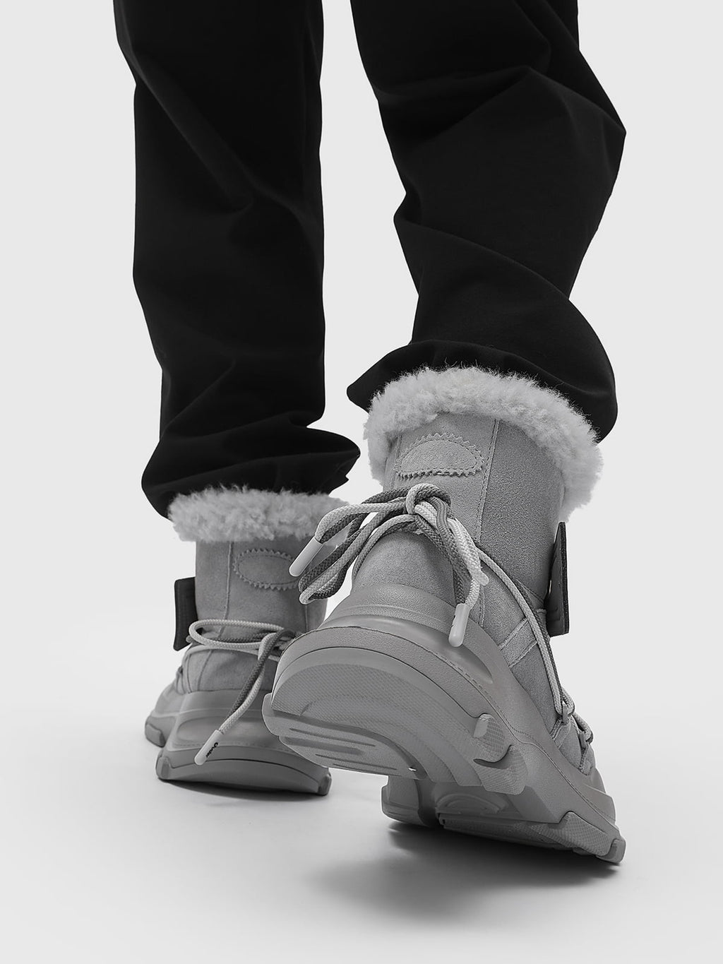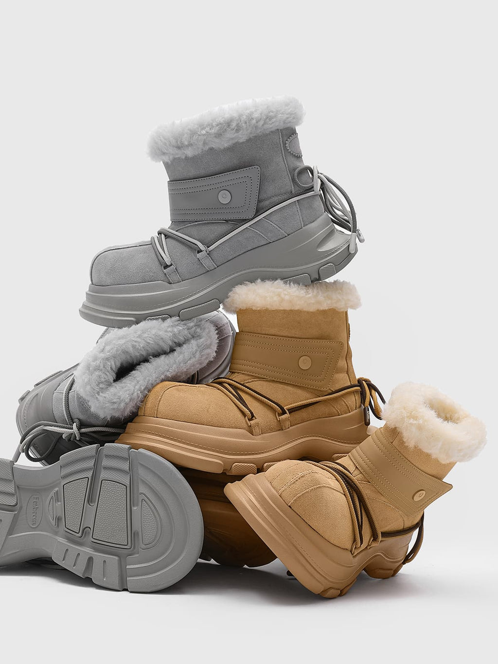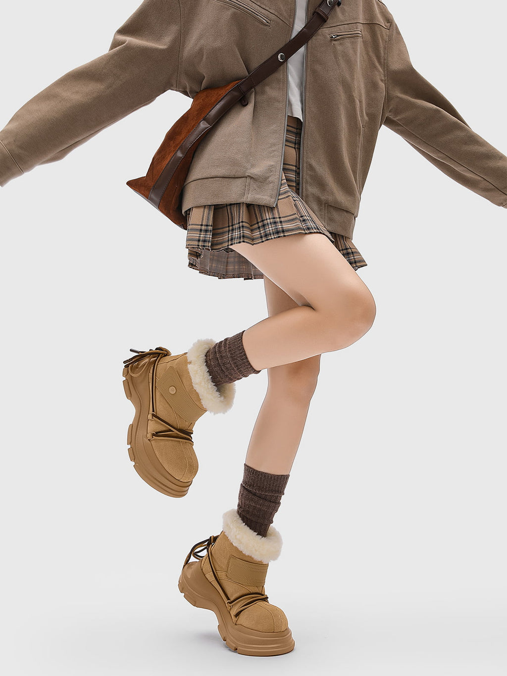 American Street Mid-calf Lace-up Waterproof And Non-slip Cowhide And Wool Big-toe Boots