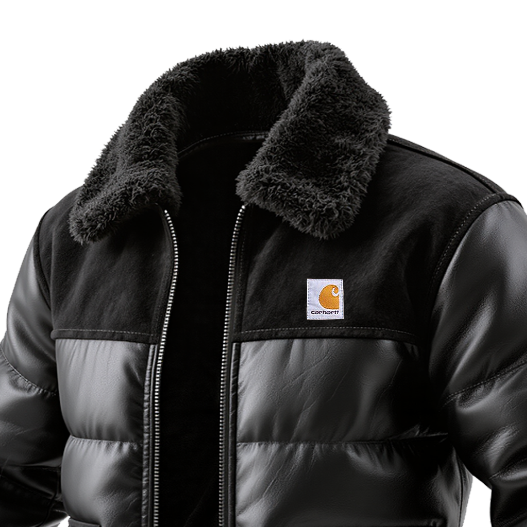 Men's Suede Splicing Outdoor Cycling Winter Jacket With Faux Fur Collar