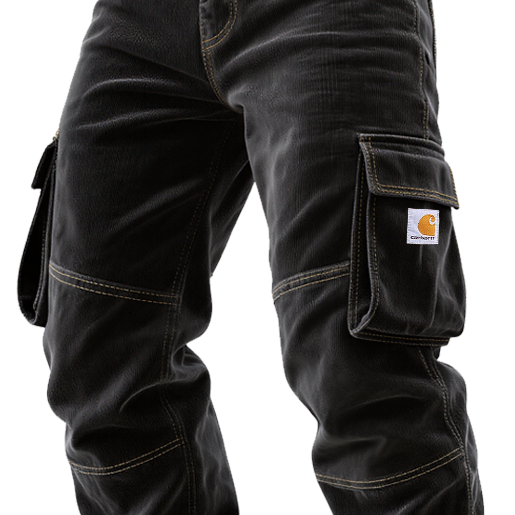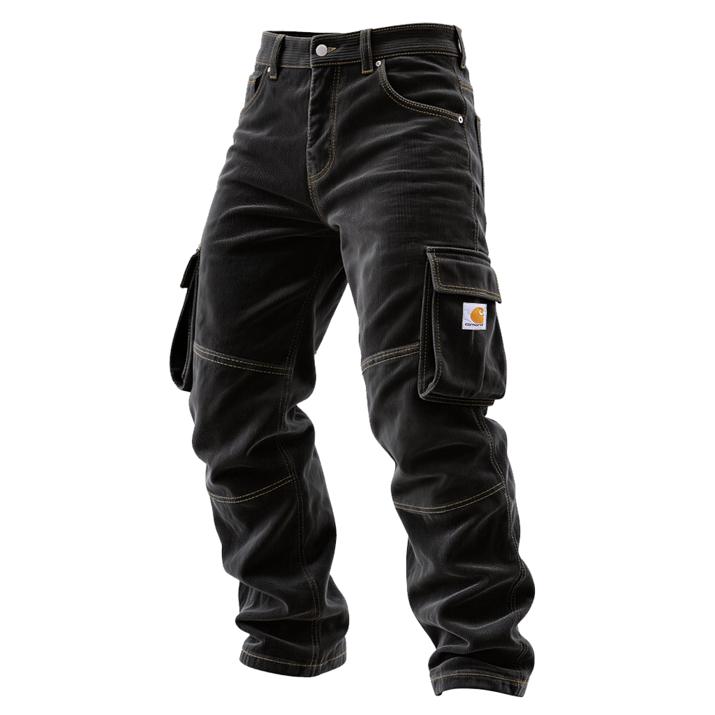 Men's Vintage Corduroy Pocket Black Cargo Work Pants