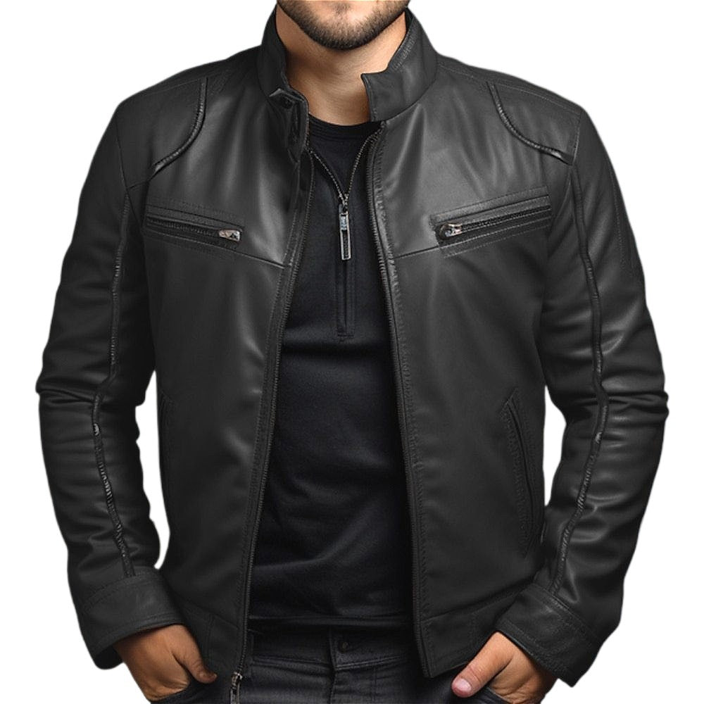 Stylish Men's Biker Jacket With Zippered Pockets And Sleek Design