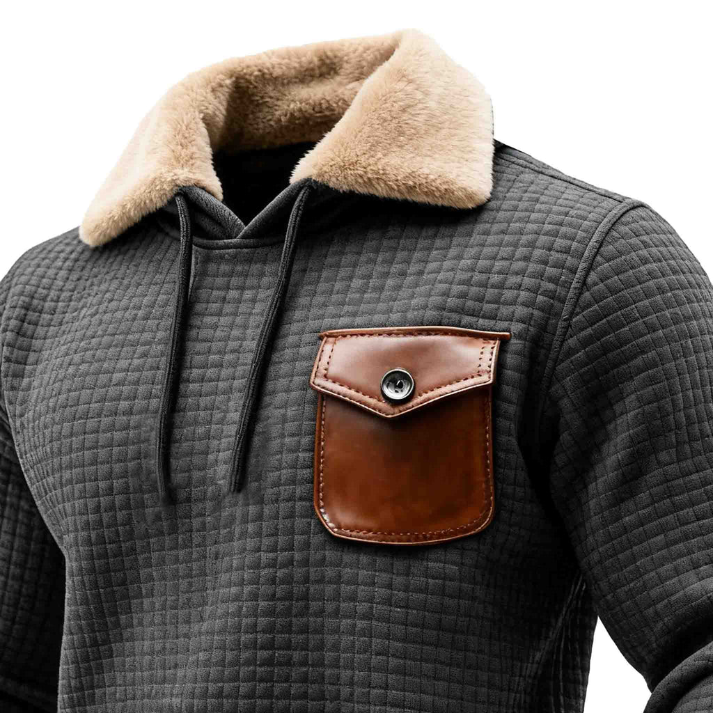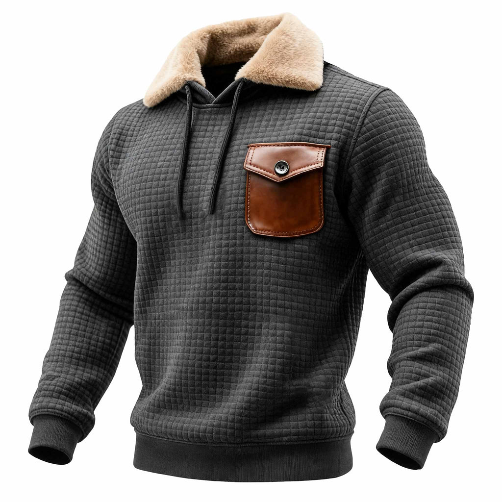 Men's Vintage Quilted Waffle Plaid Leather Pocket Fleece Lapel Sweatshirt