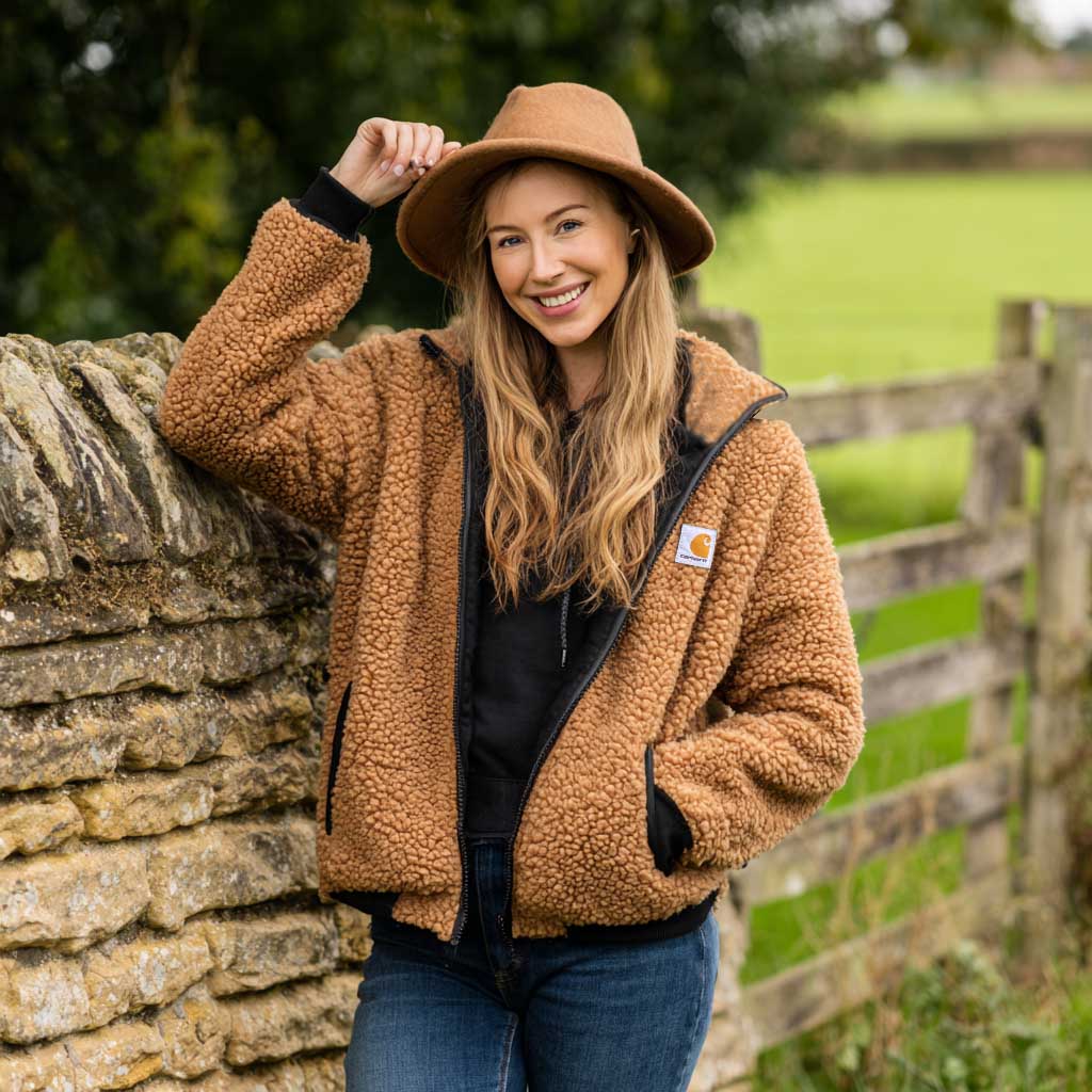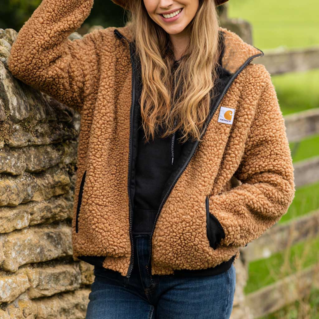 Women's Vintage Brown Fleece Full Zip Stand Collar Jacket