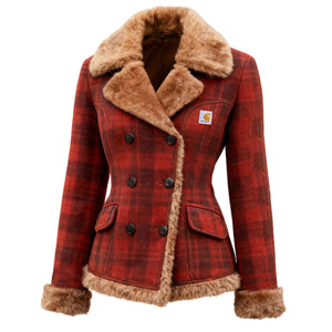Women's Vintage Red Plaid Faux Fur Lined Jacket