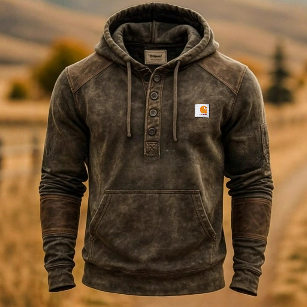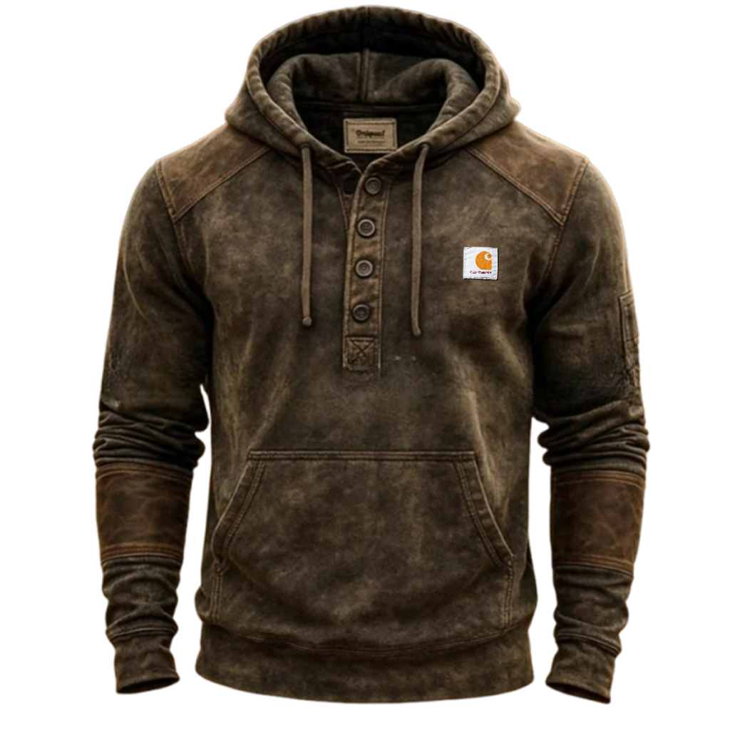 •    Design Elements: Button-down front, drawstring hood, chest pocket with logo patch