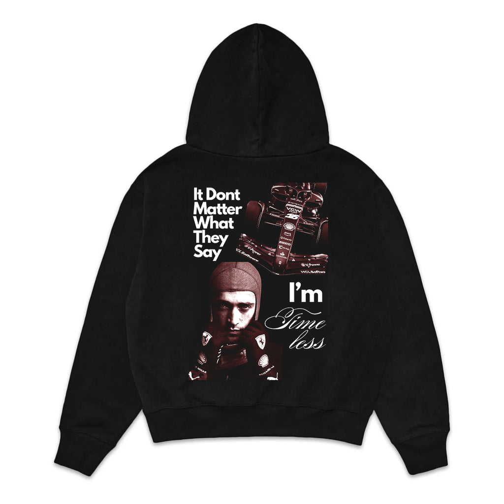 • Design Elements: Bold racing car graphic, motivational quote print, classic hooded silhouette