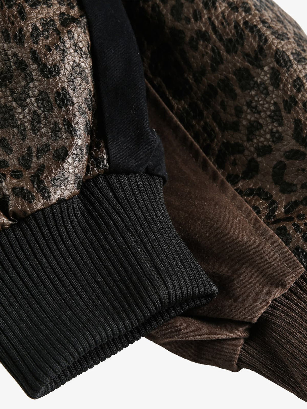 Leopard Print Patchwork Faux Two-piece PU Leather Jacket