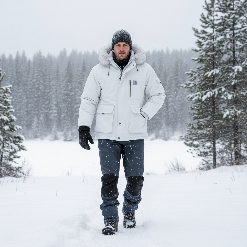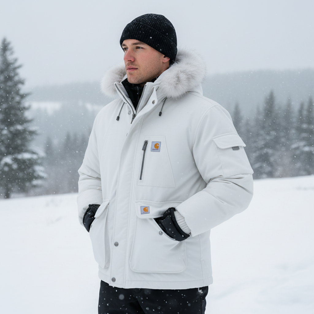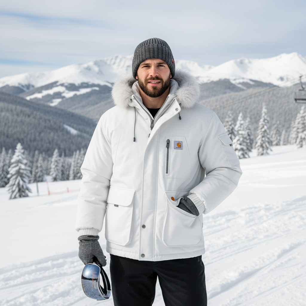 • Design Elements: Features a sleek quilted pattern and a detachable hood for versatility