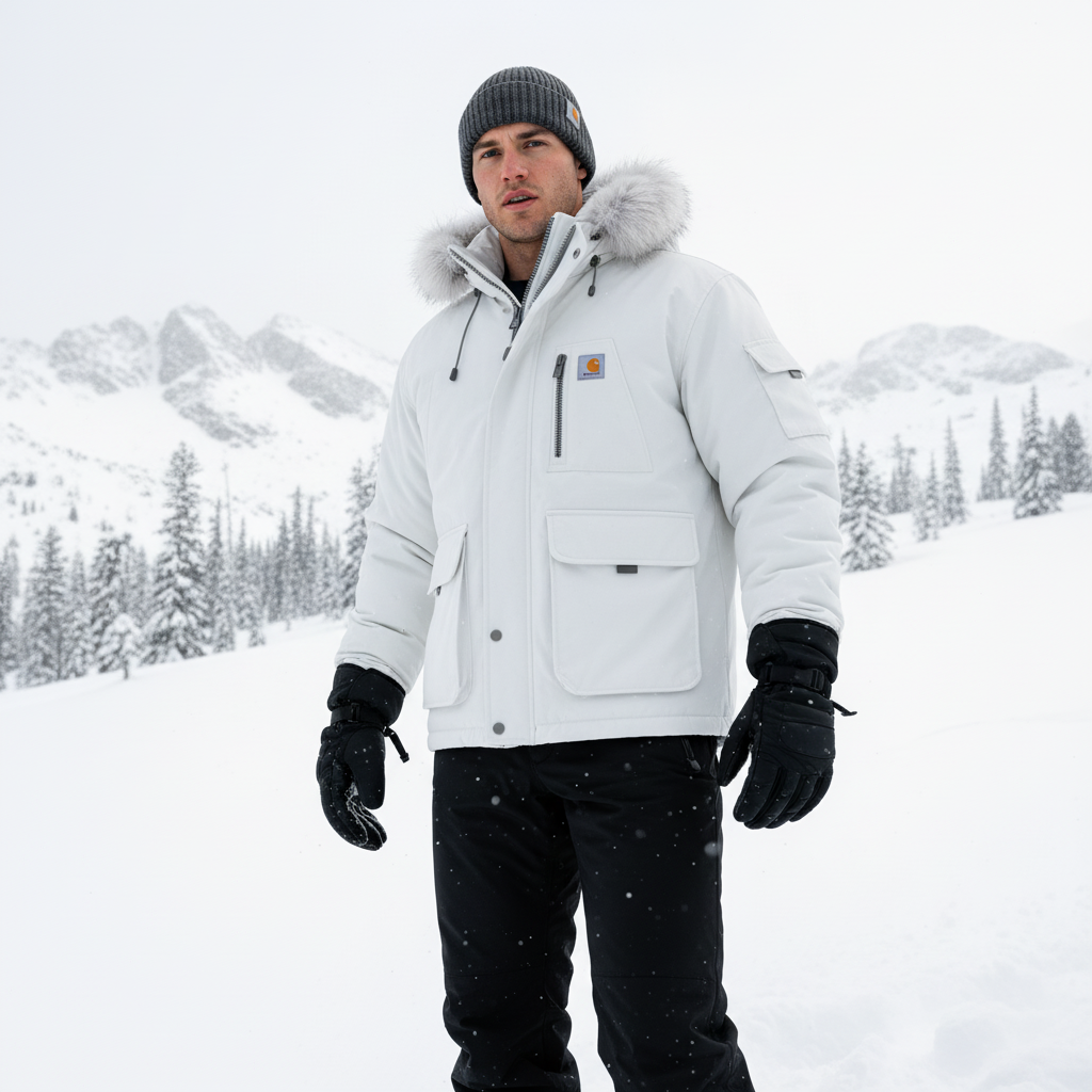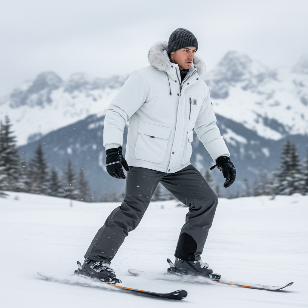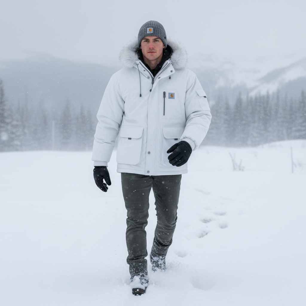 • Design Elements: Features a sleek quilted pattern and a detachable hood for versatility