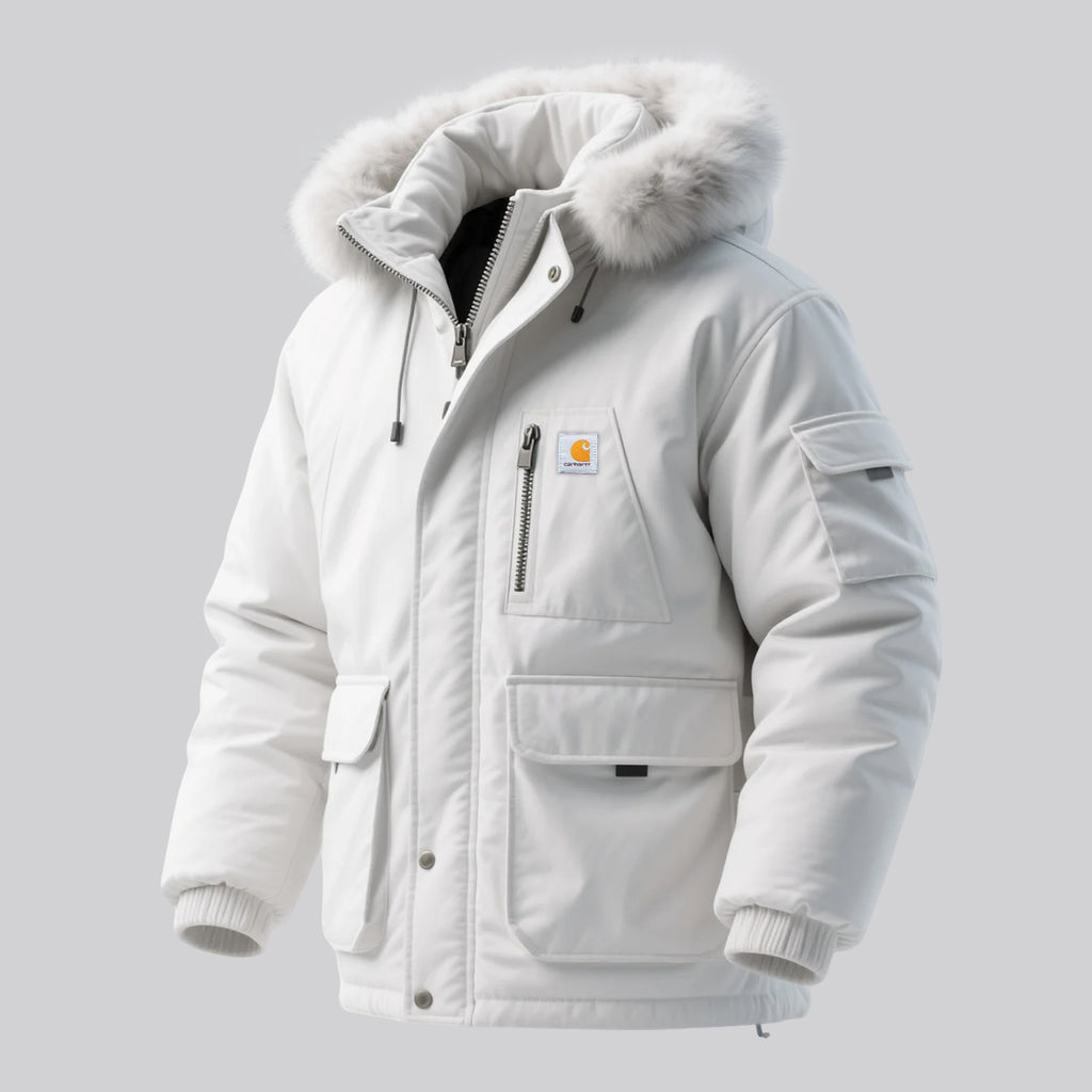 Men's Turtleneck Hooded Parka With Detachable Fur Collar