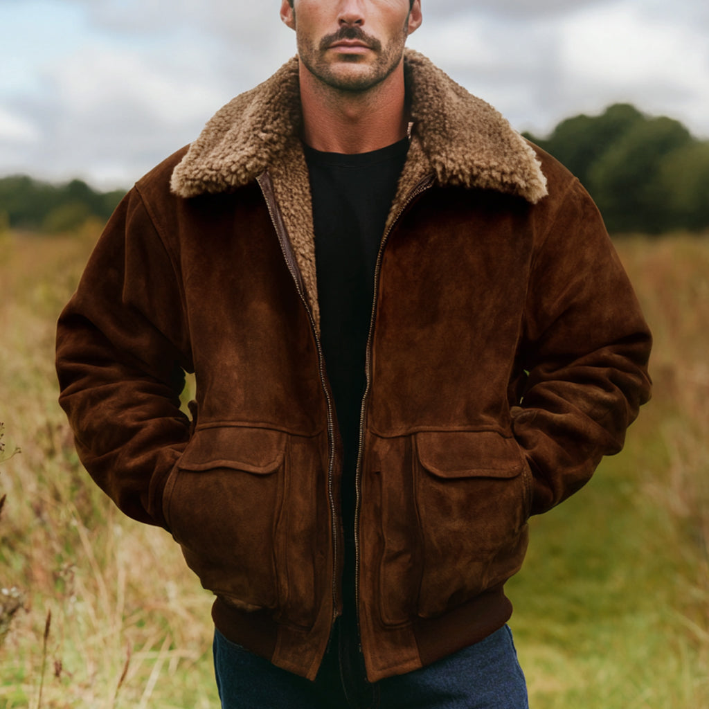 • Men's Fashion Stone Pattern Stand Collar Zipper Slim Fit Leather Jacket