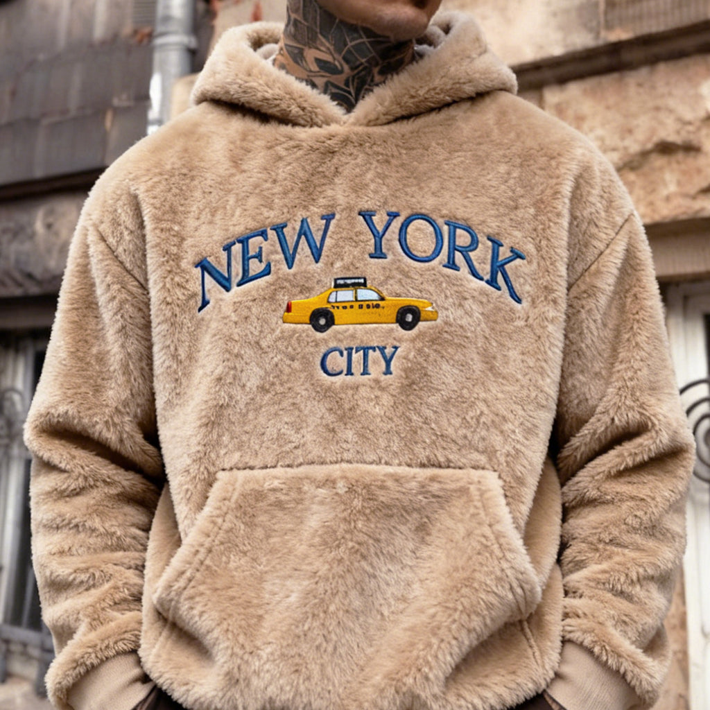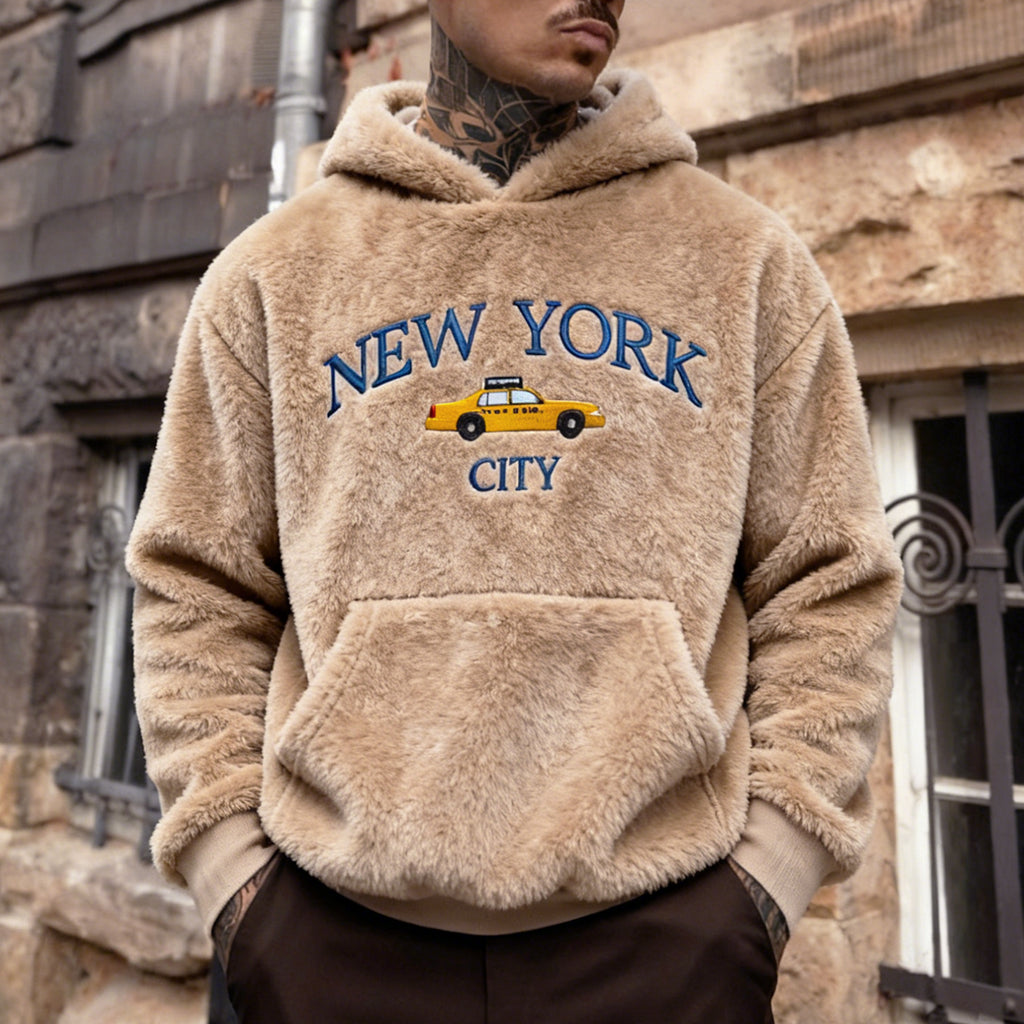 • Design Elements: Embroidered "New York City" text with a taxi graphic