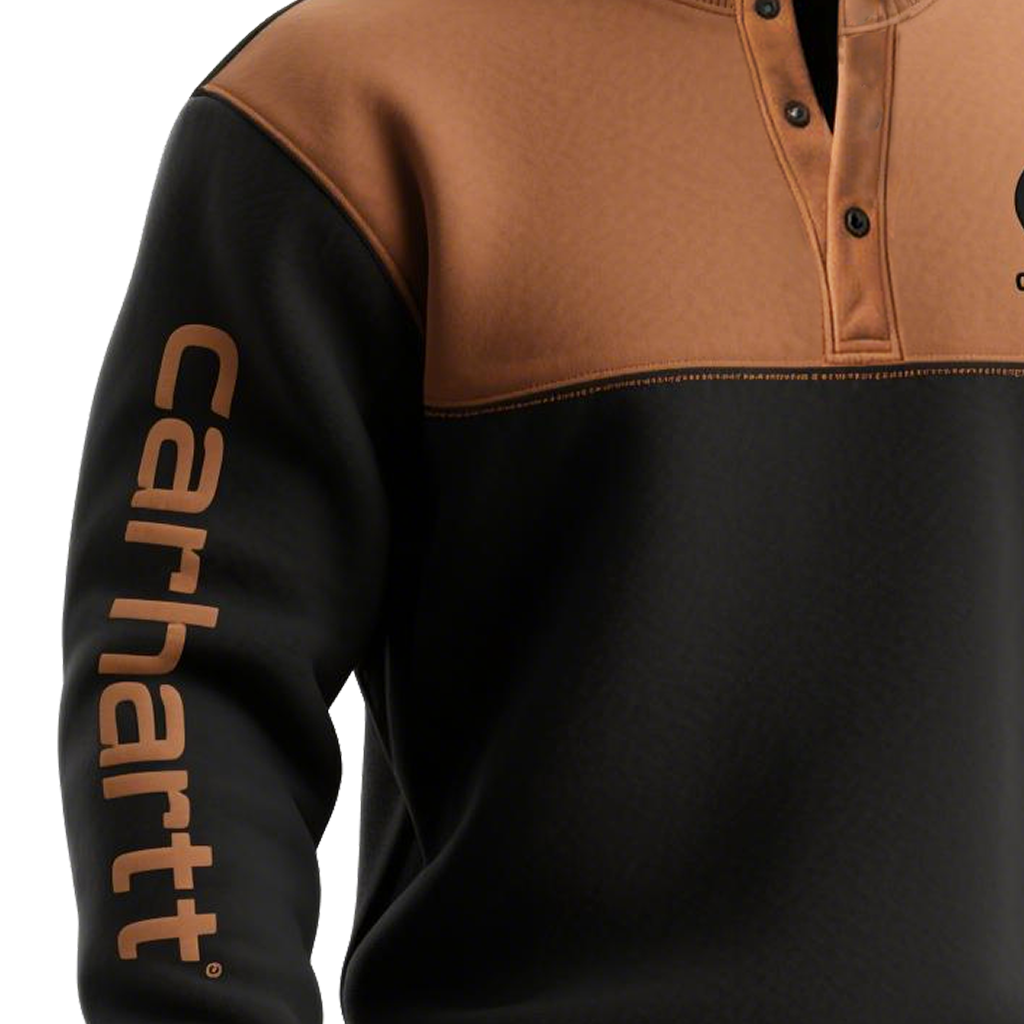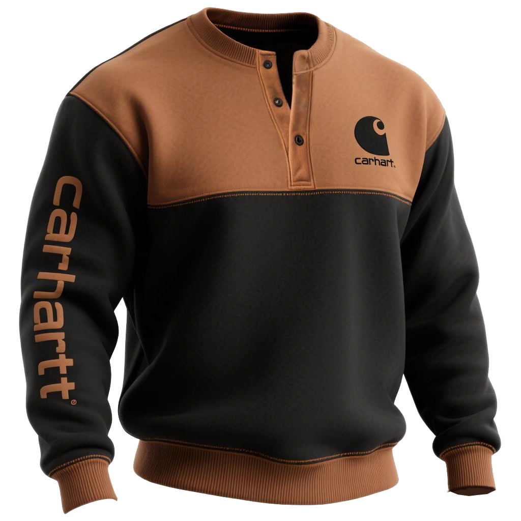 Men's Vintage Brown And Black Patchwork Henley Sweatshirt Logo Patterned Print