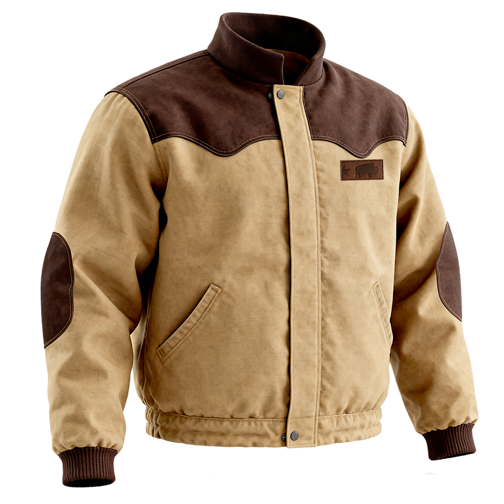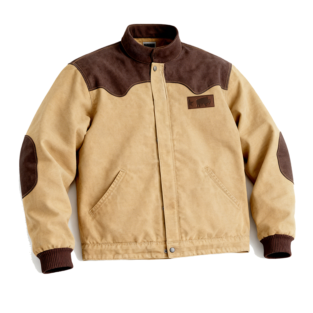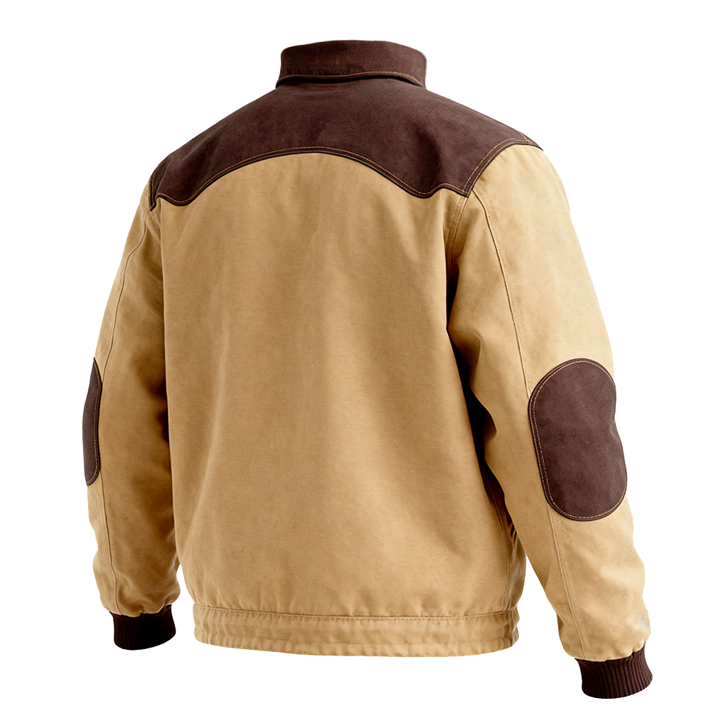 Men's Vintage Suede Patchwork Cargo Jacket With Buffalo Emblem