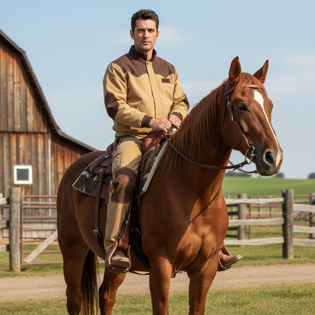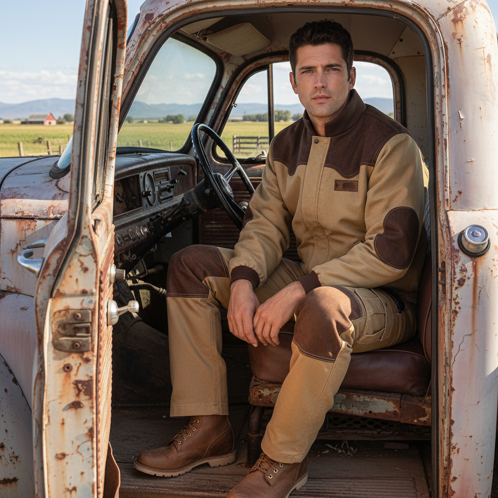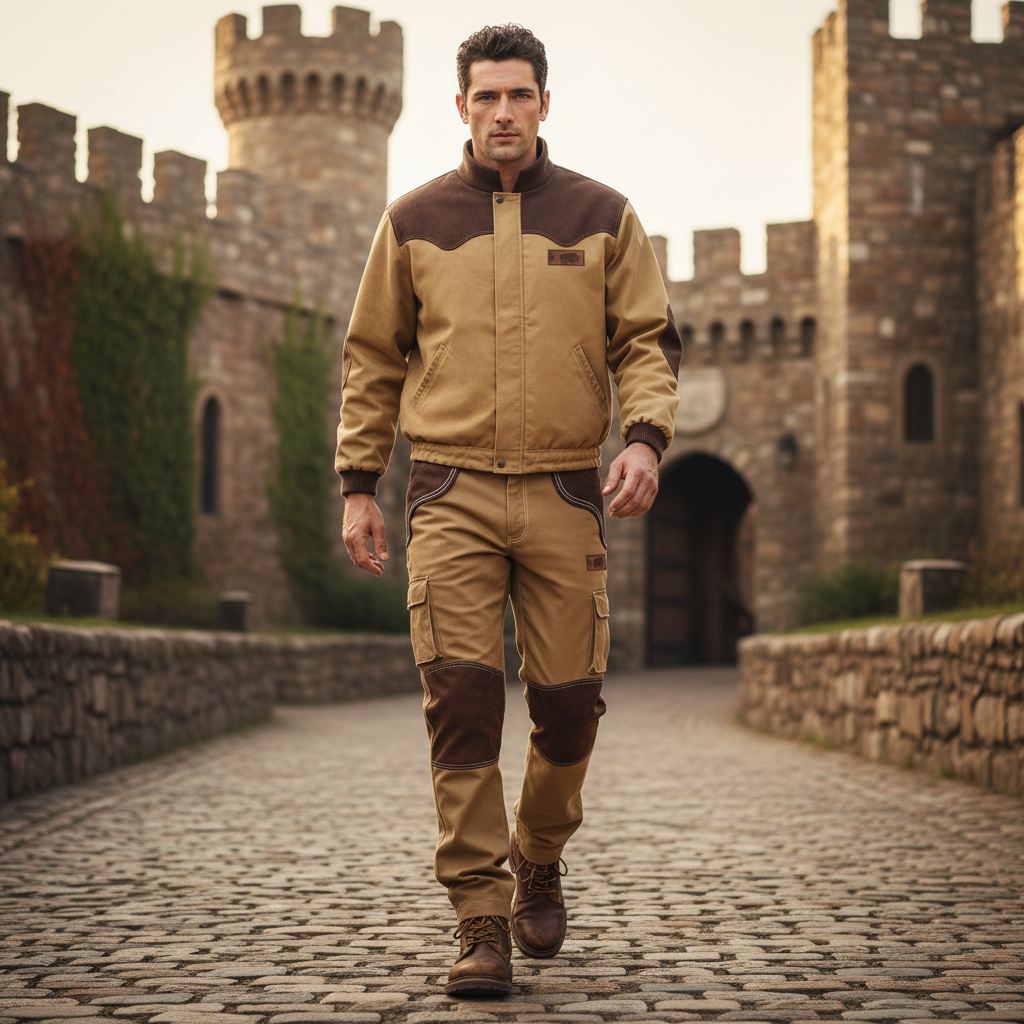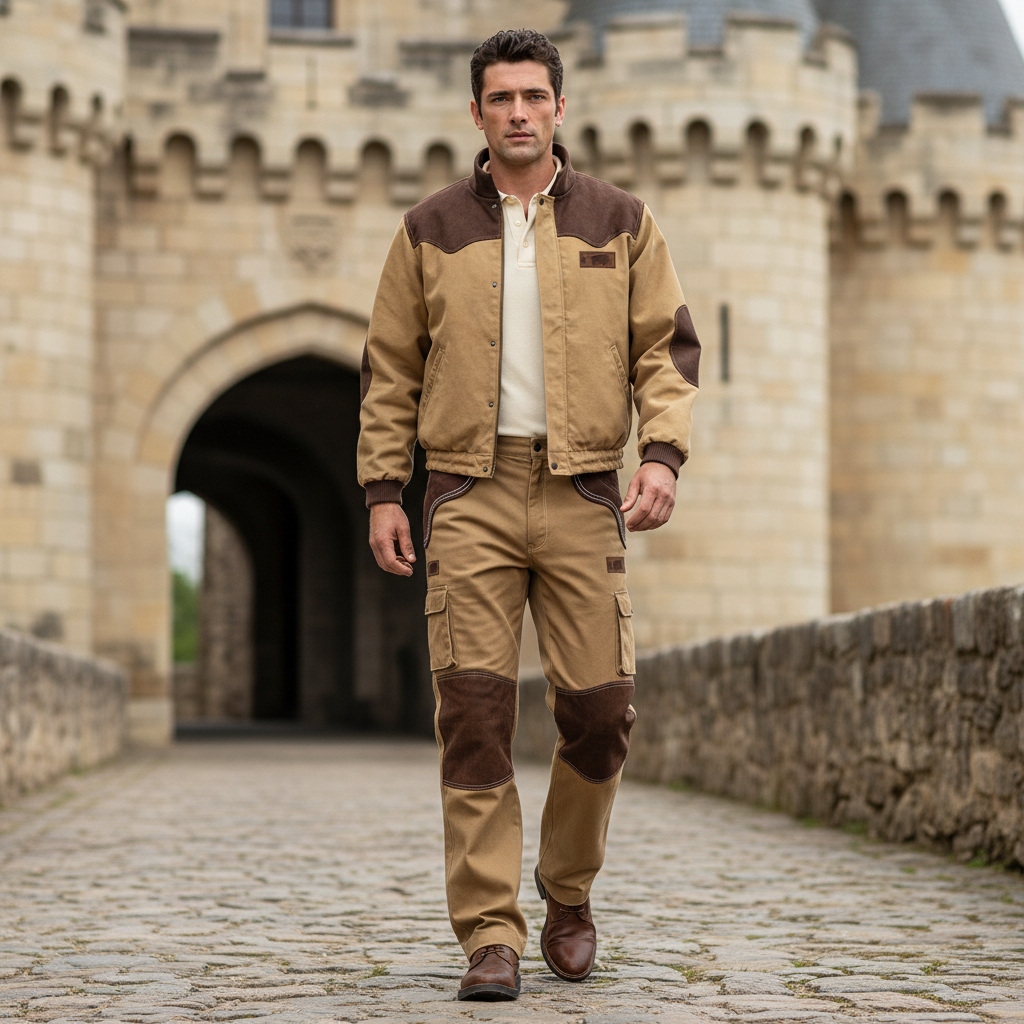 Men's Vintage Suede Patchwork Cargo Jacket With Buffalo Emblem