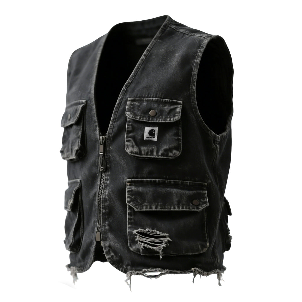 Men's Outdoor Retro Distressed And Ripped Multi-pocket Vest/Workwear