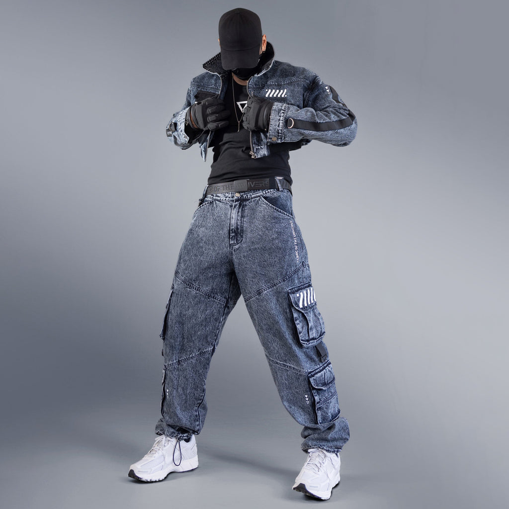 Unisex DJ-Type 001A Acid Denim Cargo Pants