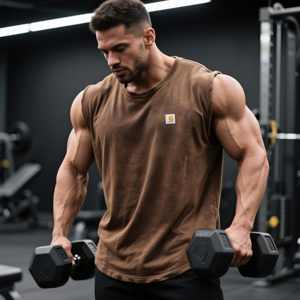 Oversized, Distressed, Vintage-style Washed Sleeveless T-shirt Top For Fitness Training And Home Wear.