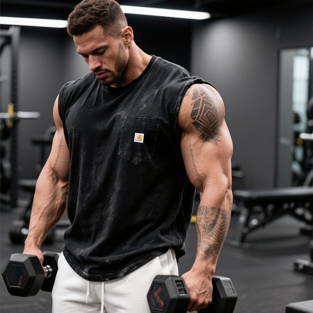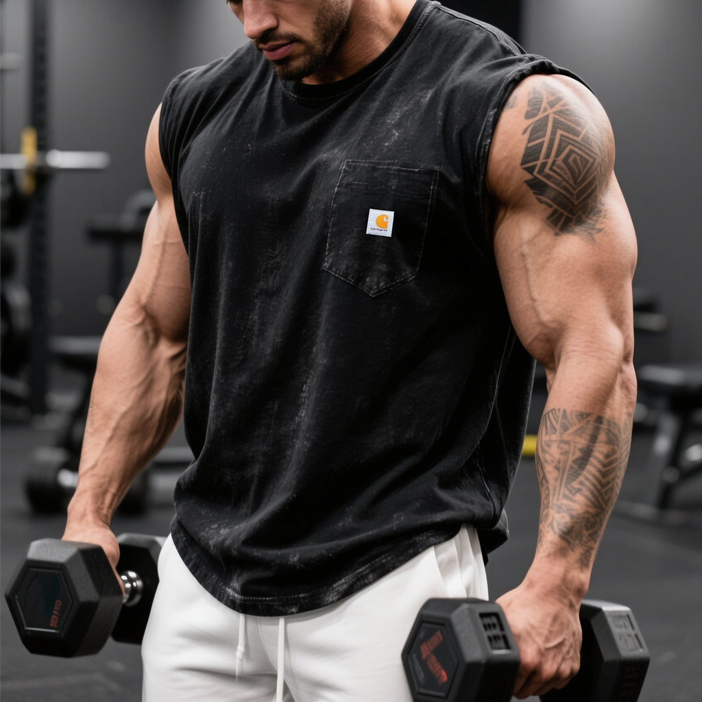 Oversized, Distressed, Vintage-style Washed Sleeveless T-shirt Top For Fitness Training And Home Wear.