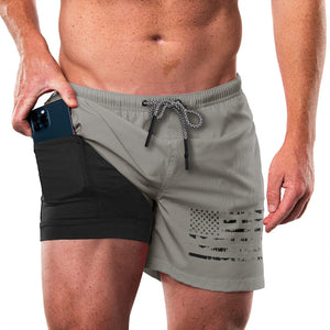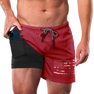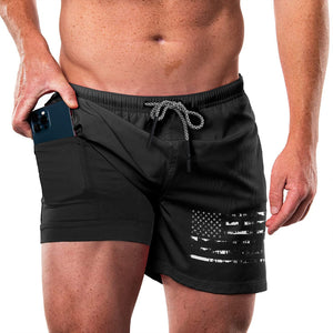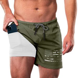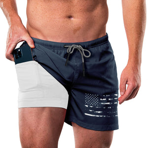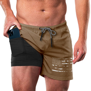 USA FLAG QUICKDRY POCKET 2 IN 1 7'' INSEAM RUNNING SHORTS