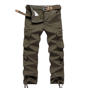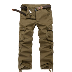 100% COTTON CASUAL DRAWSTRING MULTI-POCKETS CARGO PANTS
