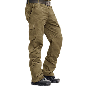 100% COTTON CASUAL DRAWSTRING MULTI-POCKETS CARGO PANTS