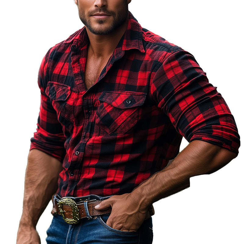 This Men's Retro Red Plaid Long Sleeve Shirt, offers a classic style combined with contemporary comfort. Featuring a vibrant red plaid pattern, this shirt epitomizes timeless fashion with a modern twist.